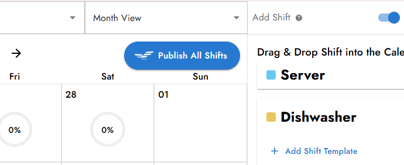 - Drag and drop the shift just like you would for a regular gig. You'll notice that the shift now appears on all selected days, and highlighted in green instead of blue.